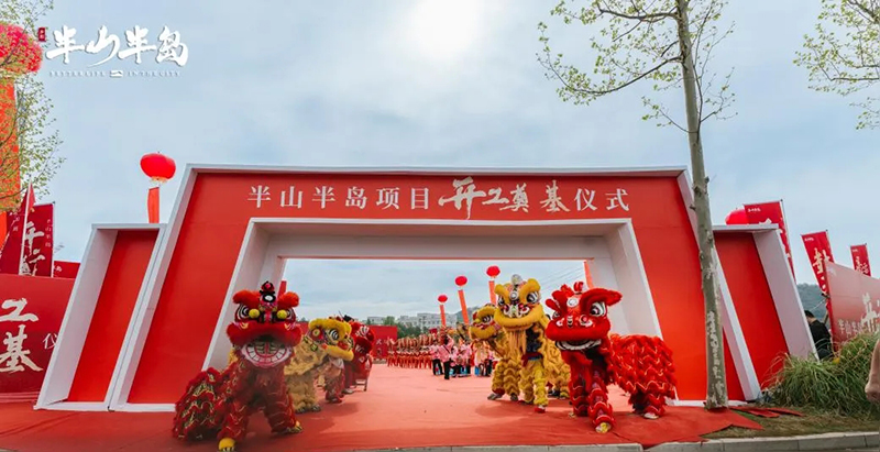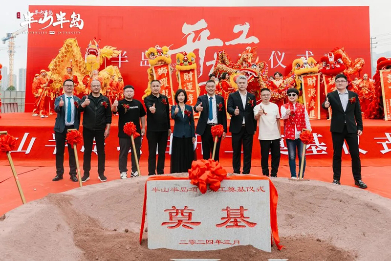 After an uplifting speech, the groundbreaking ceremony officially began, with drums and music playing, colorful smoke setting off, and salute cannons sounding in unison, creating a festive and lively atmosphere. In front of everyone's attention, the invited leaders and guests jointly laid the foundation and soil for the project, planting the cornerstone that symbolizes solid stability and eternal foundation into the soil. The Banshan Peninsula project officially started construction. On site drum music played in unison, colorful smoke swirled, and salute cannons sounded in unison, creating a festive and enthusiastic atmosphere. Together with the guests, we witnessed this glorious moment. Amidst the roar of the construction salute, the ceremony was successfully completed.