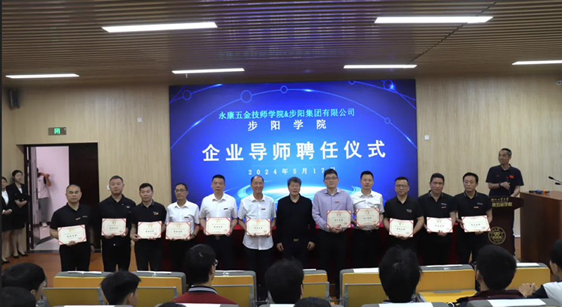In order to fully leverage the advantages of both schools and enterprises, Buyang Group and Yongkang Hardware Technician College have implemented a "hand in hand" mutual employment between schools and enterprises, with 11 executives from Buyang being appointed as the school's corporate mentors and 4 doctoral expert teams as the school's technical experts. This greatly promotes deep cooperation between the two sides in talent cultivation, technology research and development, skill enhancement, and further realizes the joint construction of schools and enterprises, leading professional development together.