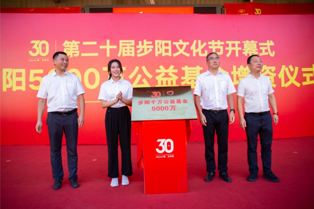 百年步陽,星火相傳。10月3日下午,步陽30周年火炬接力、第二十屆步陽文化節(jié)開幕式暨步陽千萬公益基金5000萬增資儀式在步陽廣場隆重舉行,集團(tuán)董事長徐步云、副董事長陳江月、總經(jīng)理徐璟珺帶領(lǐng)管理團(tuán)隊參加30年火炬?zhèn)鬟f及開幕式各項活動。