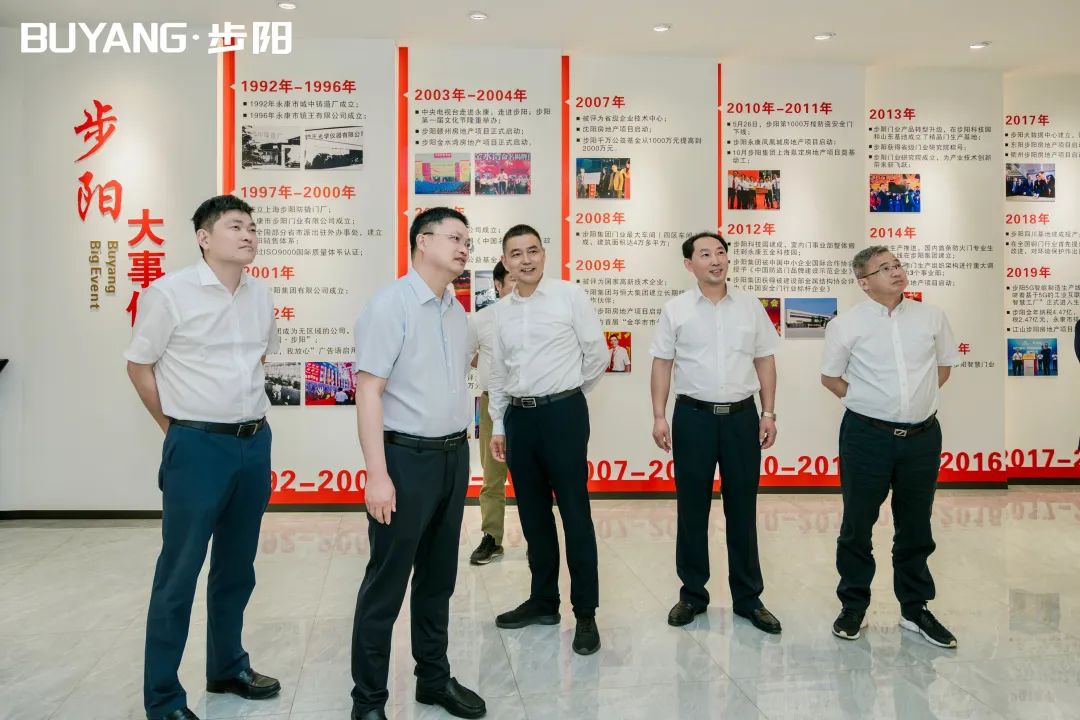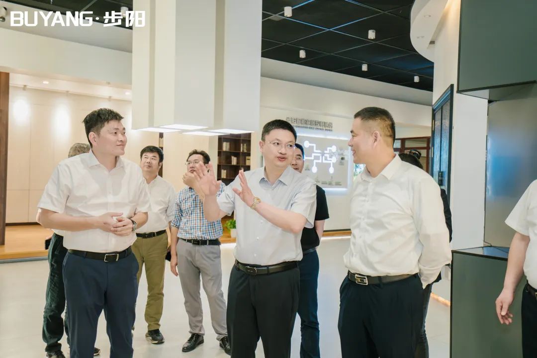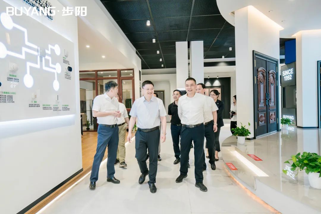 集團董事長徐步云陪同呂書記一行參觀了步陽科技館、黨建中心及門成品展廳/汽輪/大數(shù)據(jù)中心,步陽工匠室、5G智能流水線,并聽取總經(jīng)辦副總經(jīng)理朱寧介紹公司科技創(chuàng)新轉(zhuǎn)型、生產(chǎn)自動化流水線等相關(guān)介紹解說。